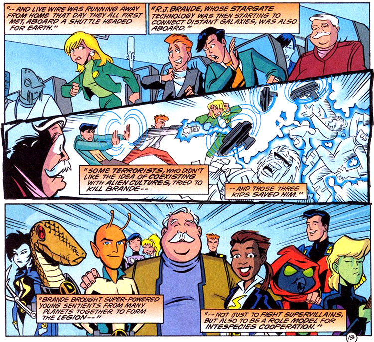 A recap of the Legion's origin story (Reboot continuity). From Adventures in the DC Universe #10 (1998); art by John Delaney and Ron Boyd.