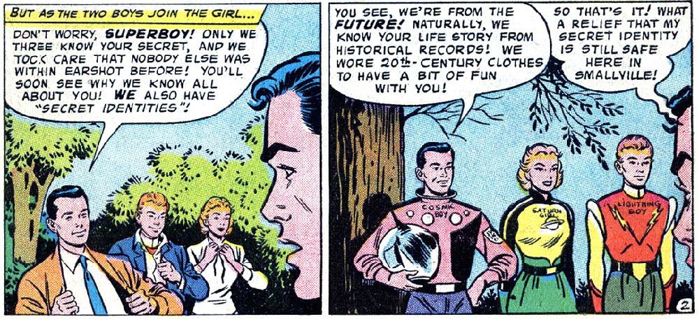 The Legionnaires costumes' from Adventure #247 generate a lot of curiosity. Indeed, the most conspicuous anomaly about the Legion's origin story is the costumes. The designs are infamous for the prominent names printed on the kids' chests.