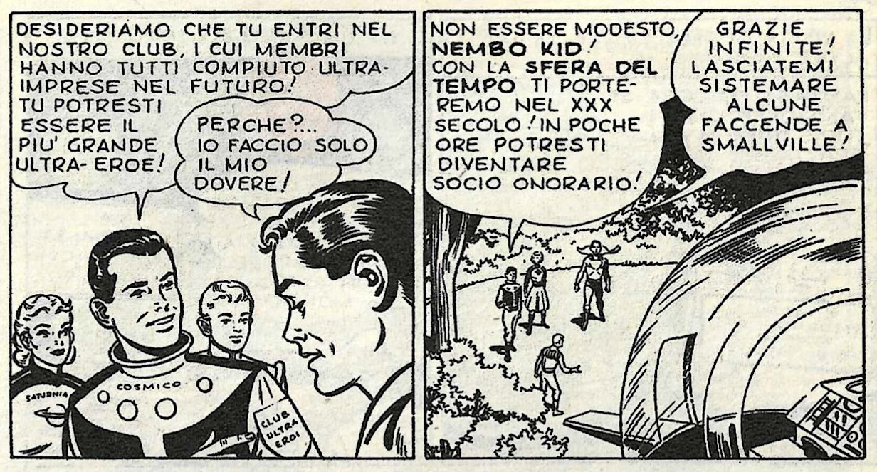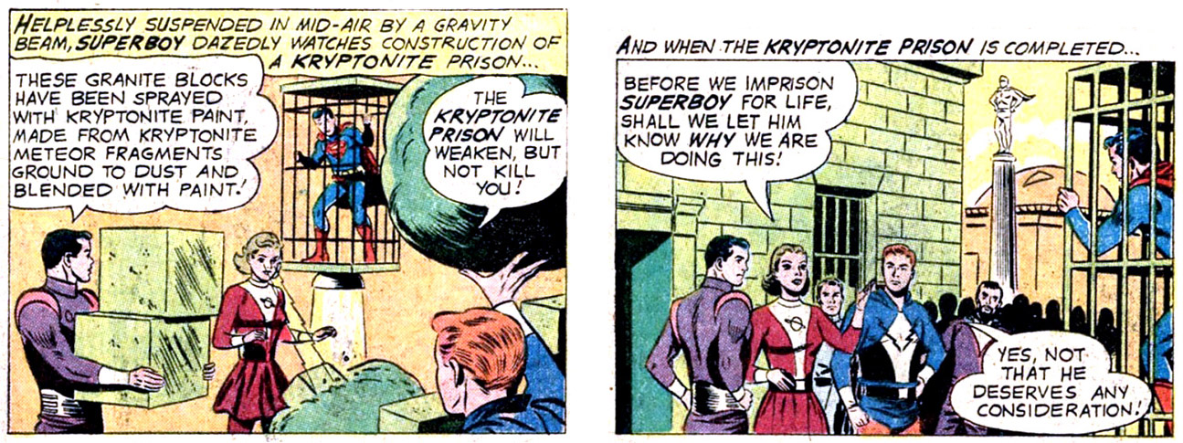 Superman's era: Mon-El is present when Superman releases Quex-Ul from the Phantom Zone. Later, Cosmic Boy and Lightning Lad appear in a parade in Superman's honor.