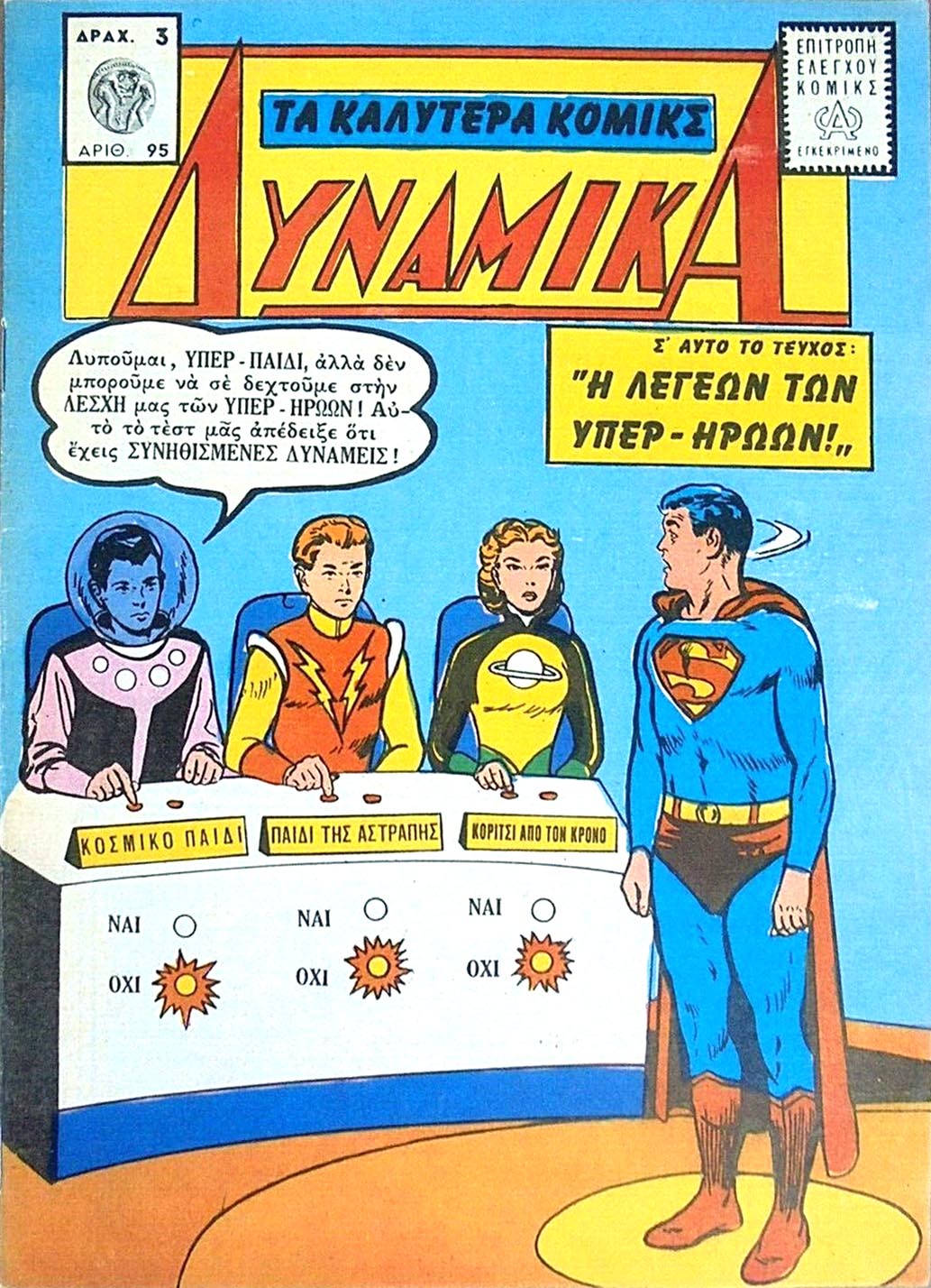 Superman's era, Adult Legion: Cosmic Man and Lightning Man pose as Hercules and Samson to help Superman fool a criminal. NOTES: This was the third appearance of the Adult Legion.