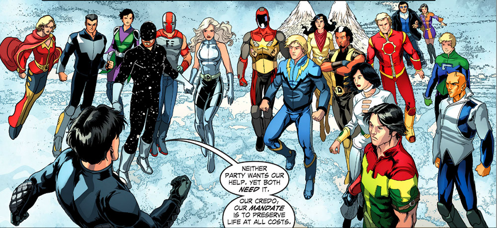 The following is not a full chronology of the series. Instead, these entries follow the various super-heroes introduced in the series, including the Legion.