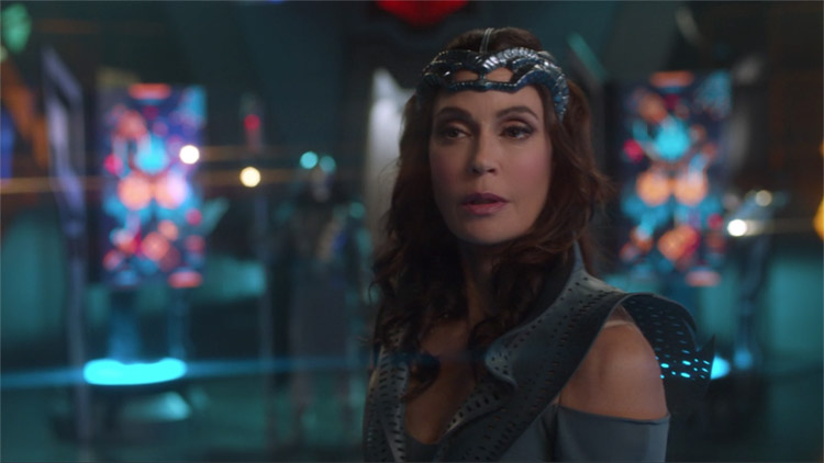 In season 3, episode 7 (20 Nov. 2017), Mon-El returned having spent seven years in the 31st century, with "the Legion." The Legion was inspired by Mon-El's time with Supergirl; he helped unify various worlds. The Legion's ship crashed to Earth and Supergirl found him and others in stasis tanks aboard. When one tank malfuncitons, they are forced to open and free its occupant: Mon-El's wife, Imra. Notes: No other Legionniares were identifiable. Imra is not called "Saturn Girl."