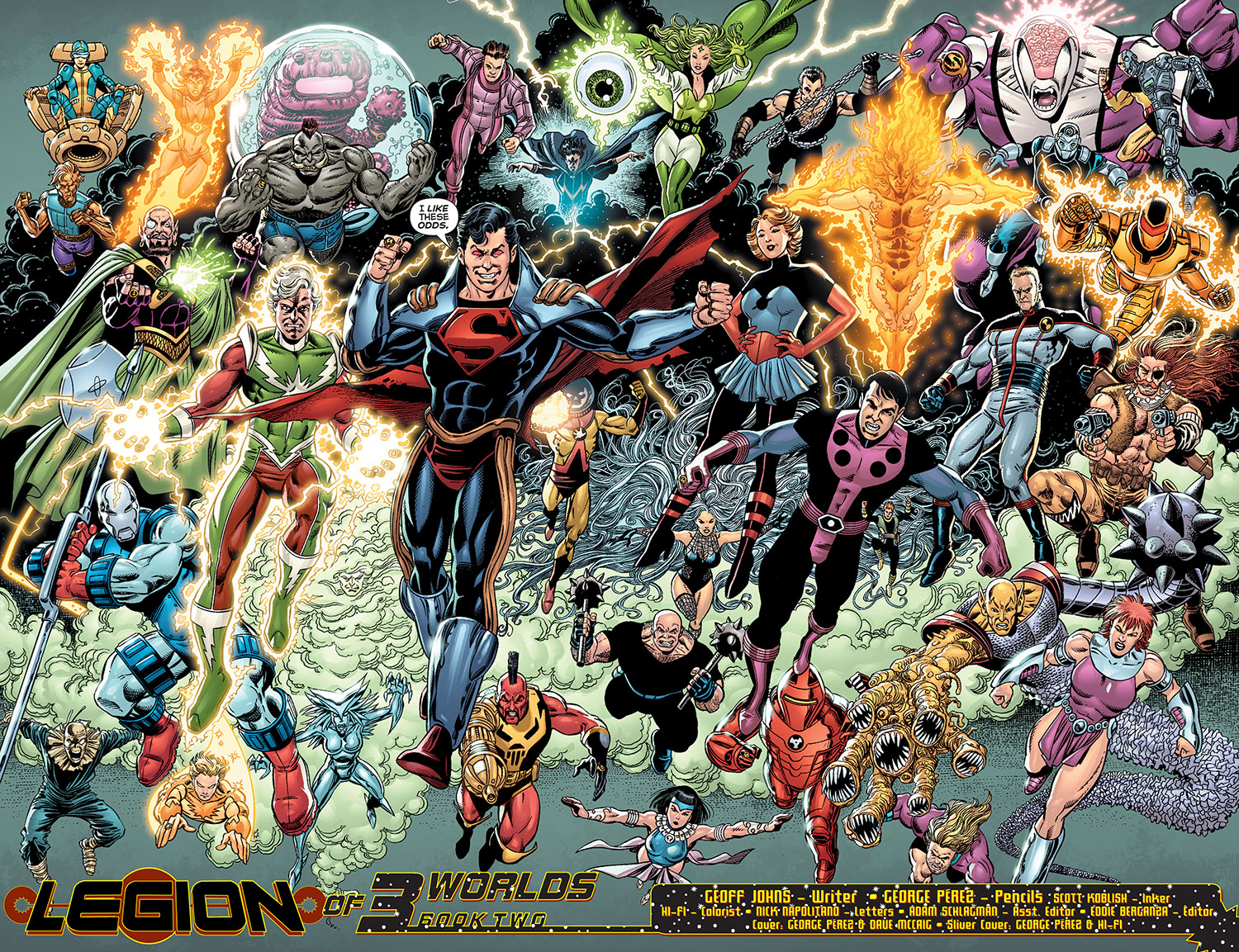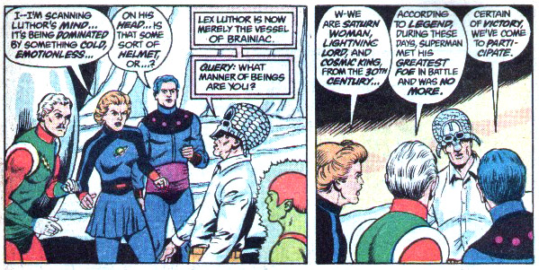 Why were the Legion of Super-Villains so persistent in their attempts to invade the 20th century, despite their repeated failure? Perhaps it was because during the so-called "Crisis on Infinite Earths," they got a glimpse of their own fate. When the Anti-Monitor's antimatter wave swept across the multiverse, all time periods collapsed on top of one another and the LSV found themselves battling alongside the 20th century's Lex Luthor and Brainiac in an army of super-villains. (Crisis #9) Surely this must have been an eye-opening experience for Lightning Lord and Cosmic King. They witnessed the fragility and near destruction of their own timeline from ground zero itself. As a result, did they redouble their efforts?