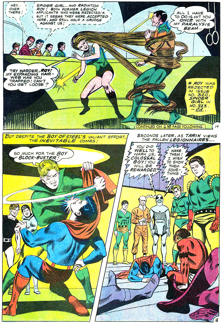 | Spider Girl (Sussa Paka of Earth) | Adventure #323 (Aug. 1964) | Adventure #372, Superboy #208, Legion vol. 3 #1-5 | Active |