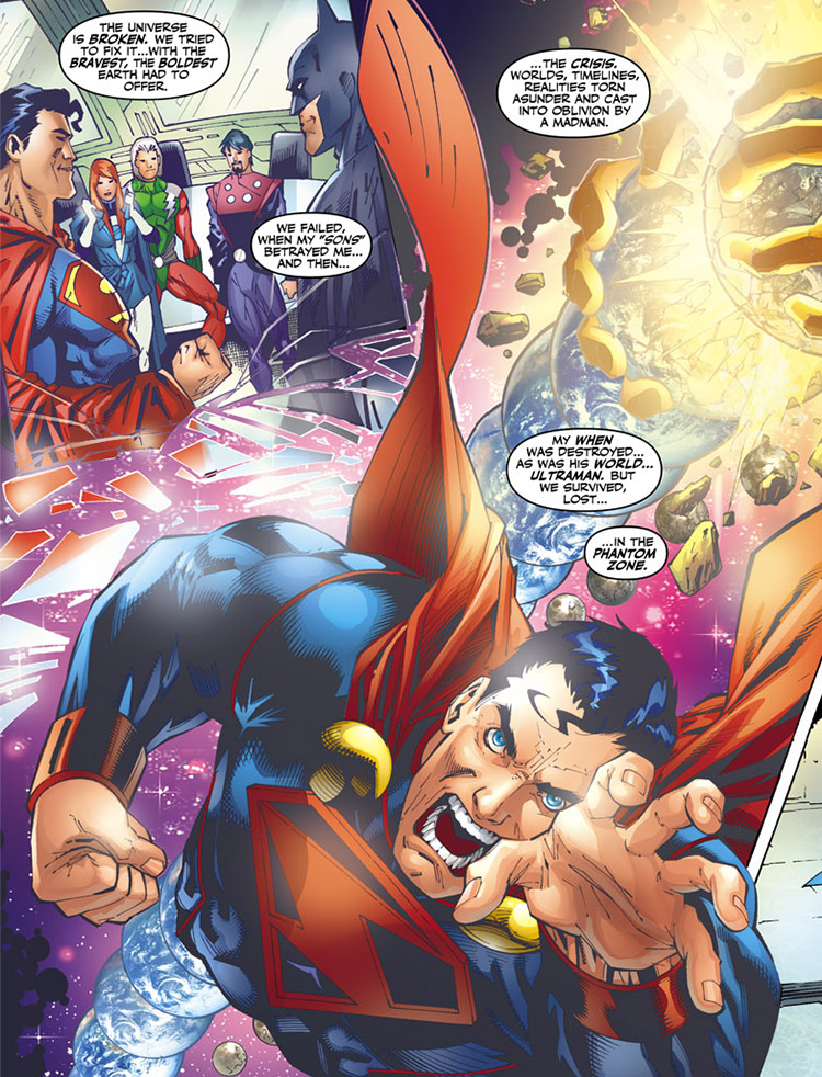 Following this new change to the timestream, Superman and Batman began reliving their deaths throughout numerous realities. They learned that the only way to stop the time fluctuations was to restore the damage at the source: at the Super-Villains' initial departure from the 31st century.