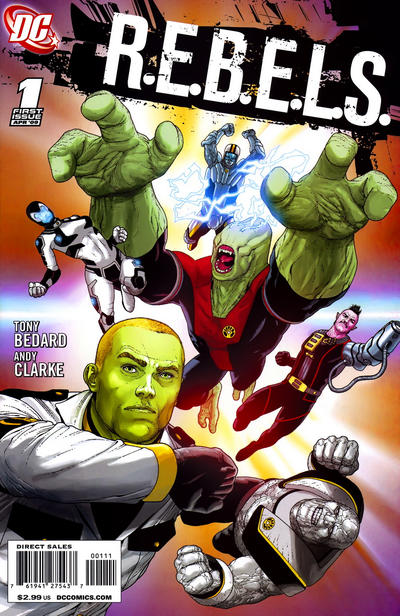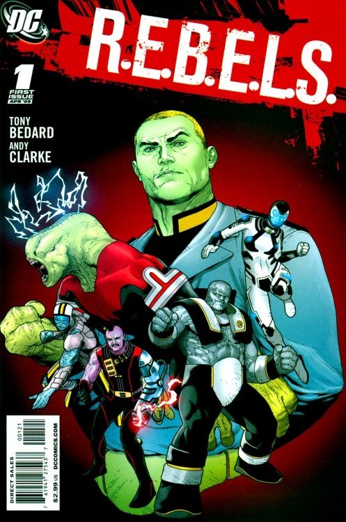 Two cover versions of R.E.B.E.L.S. vol. 2 #1 (2009); art by Andy Clarke.