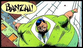 Jiv Reduu came from the planet Bummb'l, where all natives are born with the ability to swell their bodies into balloon-like forms. When the L.E.G.I.O.N. was formed, the planet held a competition to select a planetary representative in the police force. Reduu won this championship and enrolled in the L.E.G.I.O.N. academy. But when it came time to admit new recruits, Reduu was rejected by Strata. (#30)