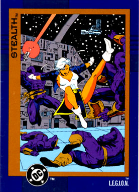 Soon, Lyrissa and the others coined a name for the new team: L.E.G.I.O.N. (Licensed Extra-Governmental Interstellar Operatives Network) and other worlds began requesting contracts for police service. (#10) Stealth denied Dox any claim on the child, and Dox responded by removing Stealth from active duty — his own way of expressing his concern for her well-being. Stealth soon left Cairn to protect her unborn child. She could never return to her home world, for fear of death, so she chose a remote world on which to give birth. (#20-21)