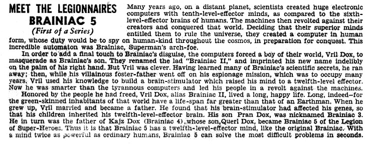 Vril's name was first given in a text feature in Adventure Comics #335 (Aug. 1965). For the post-Crisis and Glorith-reality version of Brainiac, see