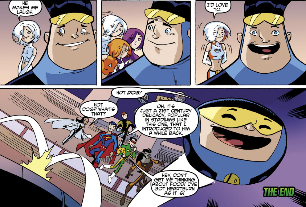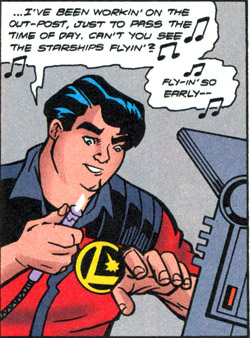 While on a date with Triad 'neutral' (who took a shine to him while her sisters preferred M'onel and Superboy), Chuck mentioned that he liked a specialty beverage called "Dr. Gingold." (#59) Chuck and Luornu continued to date. Note: Gingold was the substance that gave the Elongated Man his stretching power in the 20th century.
