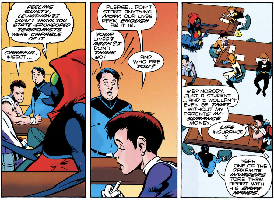 Their most recent crop succeeded and failed on these points. After Variable Lad sacrificed his life to defeat Cosmic King, (#529) four other Academy students were admitted to the Legion. (Legion v.7 #1)