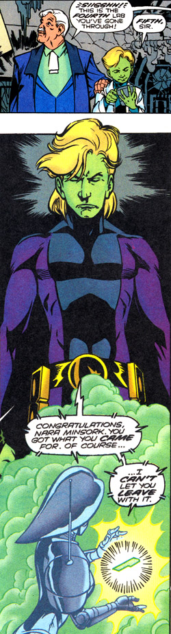 While he was there, he encountered the Legion when they came into conflict with the Green Lantern Corps over his use of a Time Viewer. (Legion vol. 2 #295) He declined Senius' offer to become his assistant, and also turned down Phantom Girl, who suggested he join the Legion. (Legion: Secret Origin #4)