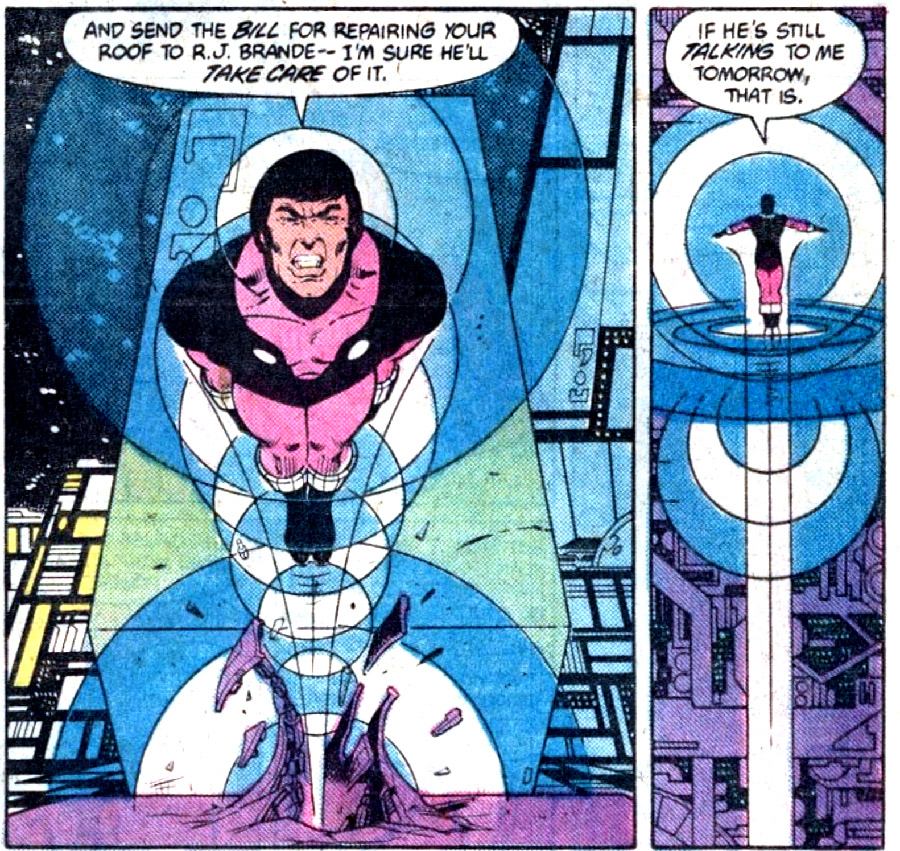 In his absence, Brainiac 5 cleared Cosmic Boy of the charges for the destruction of the Dominion—by incriminating Mekt Ranzz for the crime. Apparently, it was Mekt's idea to destroy the Dominion, and his Wanderers had telepathically planted the suggestion in Cosmic Boy's head. (#33) This was one of three missions orchestrated by Brainy with the pretext of finding Cosmic Boy. (#31-36)