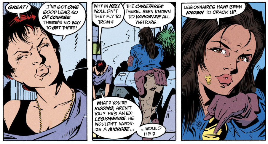 She decided to return to the Legion, which at that time was racing to find a bomb planted by the Khunds on Weber's World. (#58)