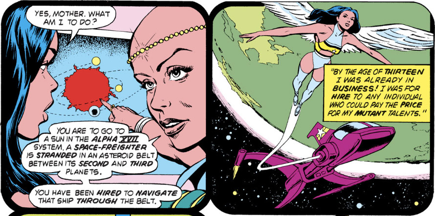 By age 13, Dawnstar was working as part of her family's business, leveraging her powers as a freelance space navigator. Her efforst alone funded some of Starhaven's own defense technology.