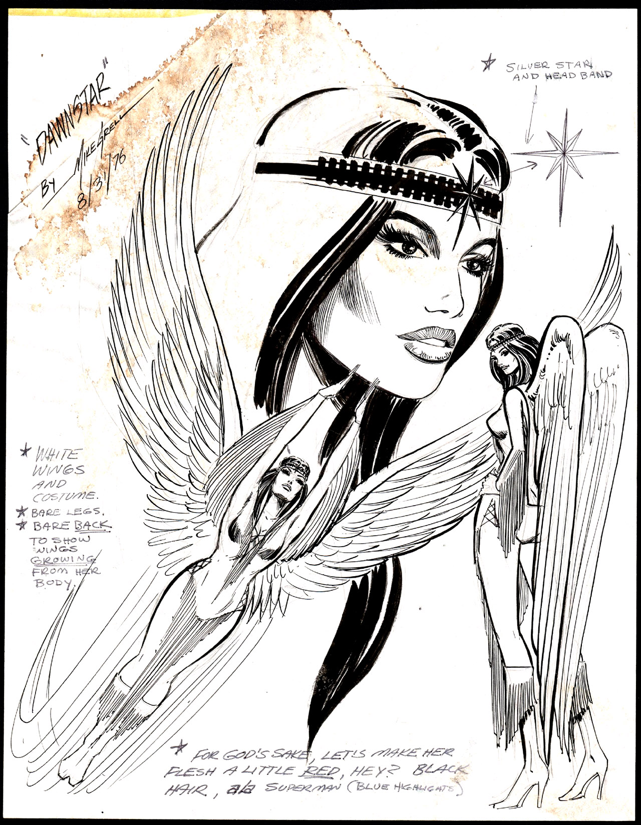 Although Dawnstar was created by Mike Grell (see his character sketch below), he drew only the cover of her first appearance (James Sherman penciled the story).Original Dawnstar