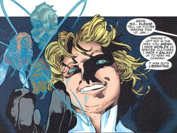 Eventually his timeline caught up to that of his fellow Legionnaires. They had been fighting the Progeny and finally met the aliens' master. Jan barely remembered them. (#10-11)