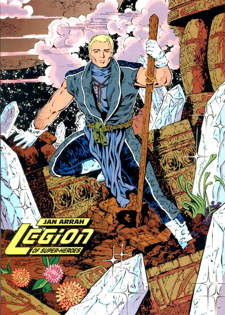 Jan has always been one of the most powerful members of the Legion, yet one of the most withdrawn. His mental discipline, which guarded him from accidentally killing people with a stray thought, allowed few people to get close to him. This changed when he met the Science Police liaison to the Legion, Shvaughn Erin. (Legion vol. 2 Annual #1) Their relationship grew at a pivotal time in Jan's Legion career. After serving as the team's deputy leader, he was appointed to the post by Lightning Lad, who resigned. (Legion vol. 2 #287) He was angered to lose the ensuing election to Dream Girl, (#291) but bounced back after that to win two full terms for himself. (#306, Legion vol. 3 #12)