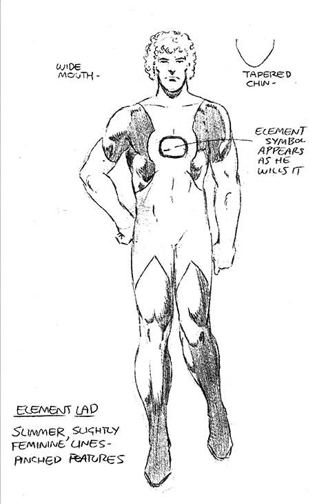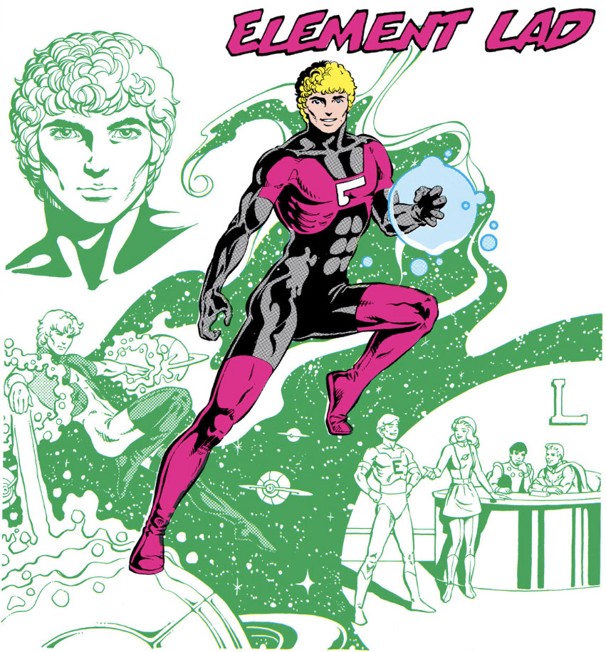 Jim Shooter on Element Lad: "Hmm. An introvert who covers with snappy patter! Could be gay, who knows? He is confident, almost arrogant. He has a right to feel very special, and his is an overwhelming power." —Interlac (1976)