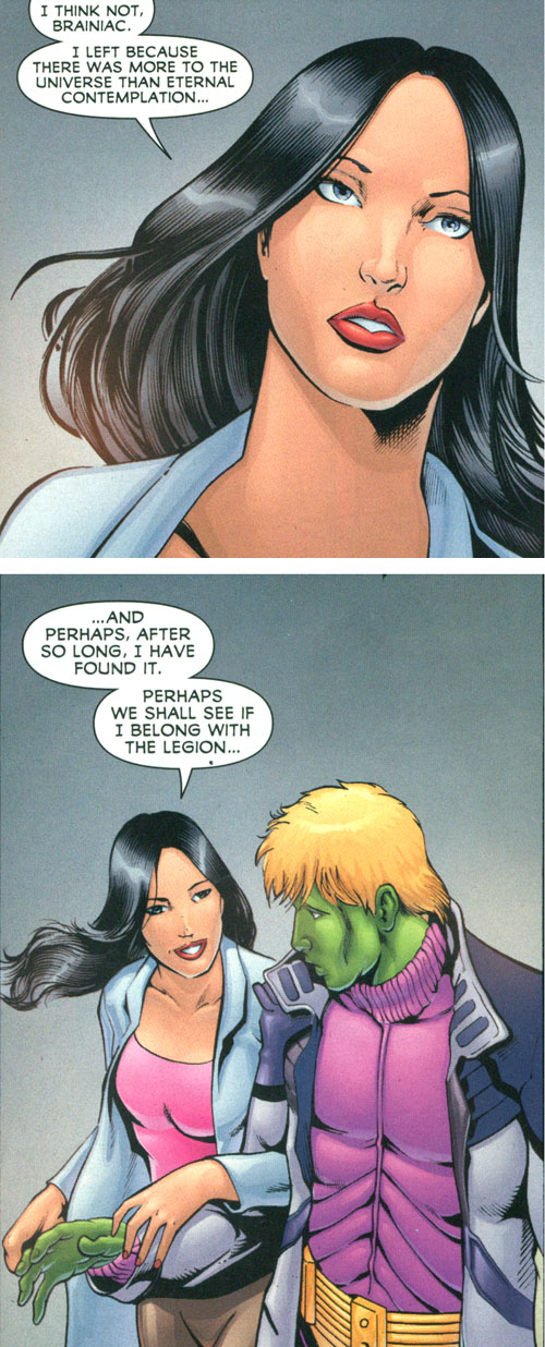 Very soon after this, the Legion lost seven members in time (thoughty they were believed dead). To fill the membership roster, Harmonia Li became a Legionnaire alongside four Legion Academy members. In the Legion, she is a natural as Brainiac 5's right hand (and scientific challenger). (Legion vol. 7 #1)