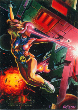 Tom and Mary Bierbaum on Laurel Gand: "Tragedy and loneliness robbed her of a normal adolescence and she's determined to make up for it. She personifies zest for life. She loves being a super-hero and doesn't do anything half-way." —Interlac (2000)