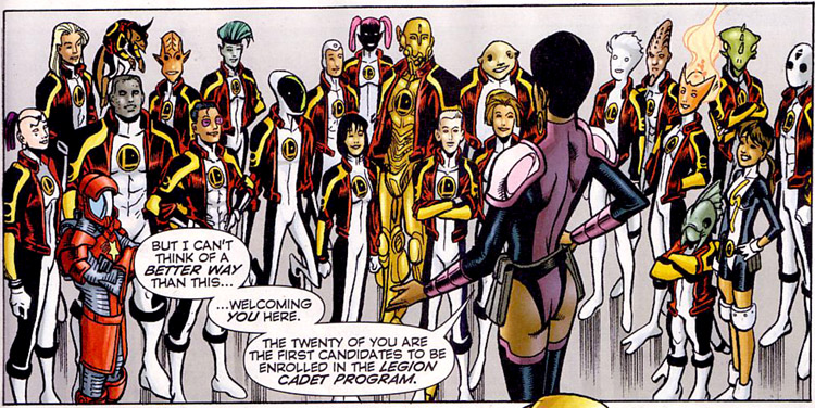 Quite a while later, they made good and established the Legion Cadet Program. Among these cadets were Polar Boy, Comet Queen, Babbage, Retro and Amp Girl. (The Legion #25)