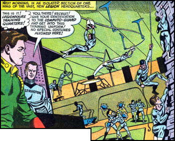 It was first revealed that the Legion had a secret "training and testing program" when agents of the Legion of Super-Villains hatched a plot to blackmail the Legionnaire called Colossal Boy. LSV agents agents posed as broadcast interviewers at the Legionnaire's home, asking his parents about life as a Legionnaire's parent. Then they turned the Allons into glass and held their lives ransom in exchange for Colossal Boy's cooperation.