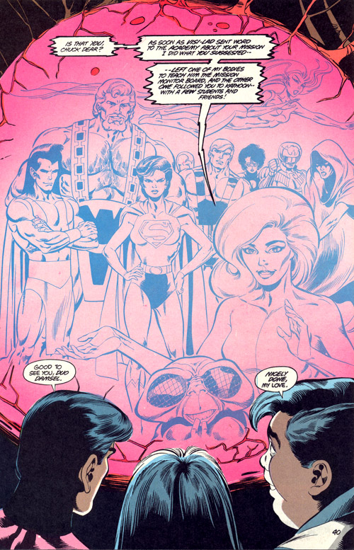 The Legion Academy was not mentioned as such until awhile later, when Wildfire became an instructor. He supervised the admission of a surprising new recruit: Laurel Kent the (supposed) descendant of and Clark Kent and Lois Lane. (Superboy & the Legion #217) Laurel was an Academy student for years until she was ultimately revealed to be an android Manhunter. (Legion of Super-Heroes vol. 3 #41-43)