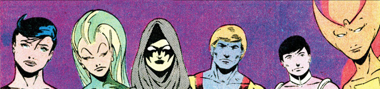 The next group of long-term students joined the Academy after being rejected for Legion membership. When the Legion accepted Blok, three Earth Natives — Crystal Kid, Lamprey and Nightwind — were left in the cold. (Legion of Super-Heroes vol. 2 #272) Not long afterwards, they were denied a second time, but encouraged to keep studying by their mentor, Wildfire. (#283, 304)