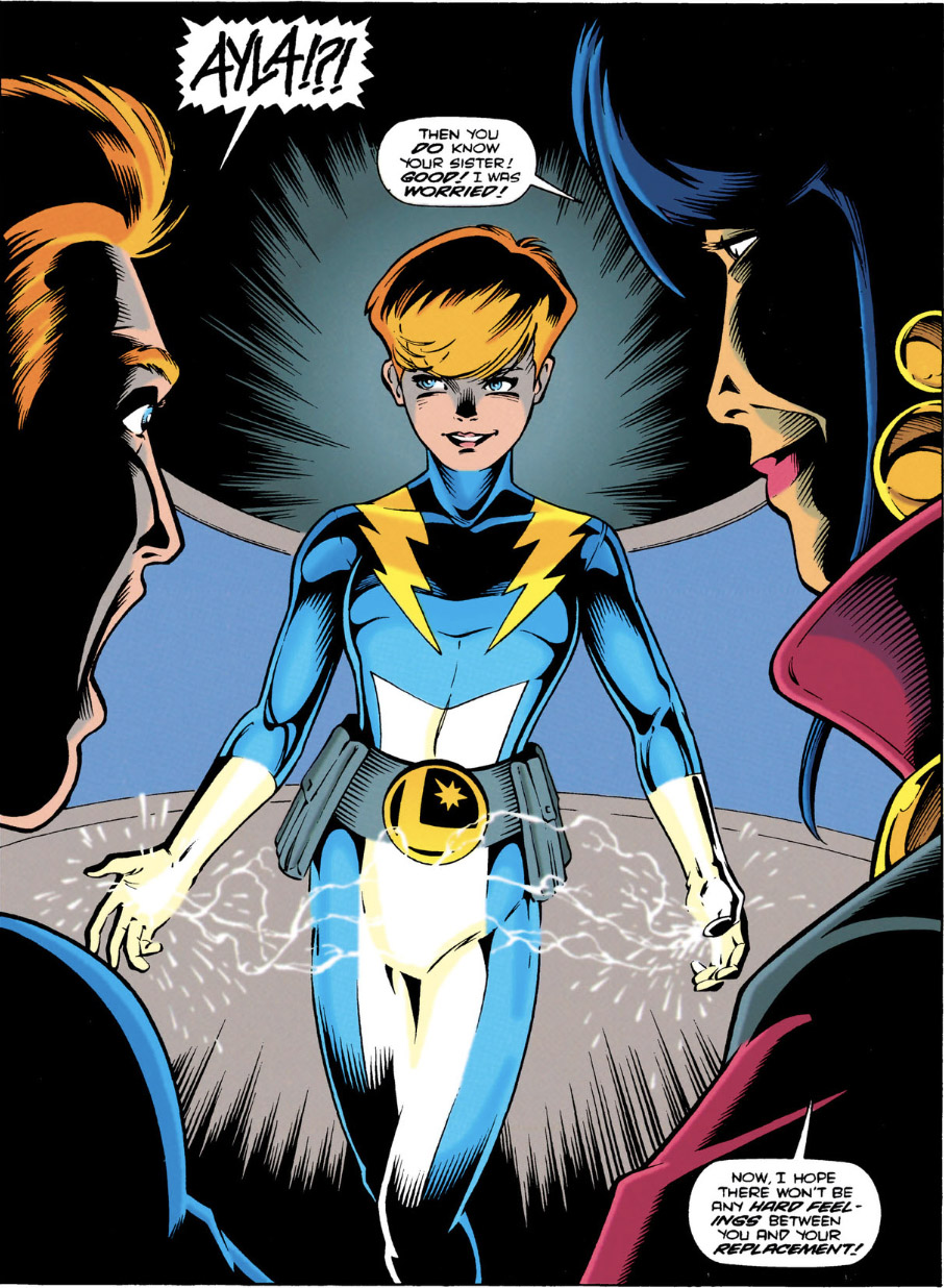 Worse, his home planet sent Ayla to represent Winath instead of him. She became the Legionnaire Spark. (Legionnaires #20, Legion vol. 4 #64)