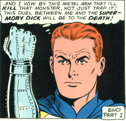 Lightning Lad had a new lease on life but misfortune continued to dog him. He lost his arm in battle with a Dxaundii wingfish that was enlarged into a "Super-Moby-Dick" of space. (#332) The arm was soon grown back by Doctor Zan Orbal. (#351) Then Garth was hypnotized and framed for the crimes of Starfinger. (#336)