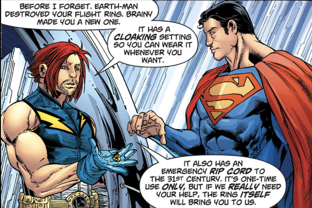 In the Retroboot, the Legion was railroaded into disbanding by the increasingly corrupt and xenophobic government on Earth. Those who were not captured went underground. Saturn Girl and Lightning Lad stepped up to fight this existential enemy: Earth-Man and his "Justice League of Earth." While a team of Legionnaires sought help from Superman in the 21st century, Garth, Imra and Rokk were captured by Earth-Man's forces. (Action Comics #859) With Superman's help, Earth-Man was brought to heel. (#861–863)