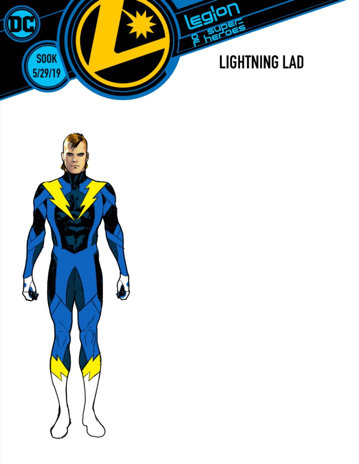 The Rebirth version of Lightning Lad underwent a "racial reassignment" during the promotional period of Legion of Super-Heroes vol. 8. In the advance solicitations for the teams' first appearances, Lightning Lad and Light Lass were depicted in their classically Caucasian way.