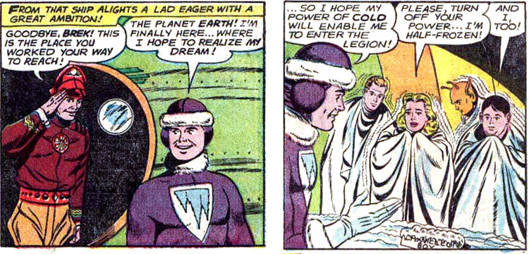 Young Brek Bannin was born with a greater facility for these cold powers. He was a fan of the Legion, and when he heard of Lightning Lad's death, he set out for Earth to 'replace' him (even though he was technically too young to join the team). As Polar Boy, he was rejected for this reason and his general inexperience. NOTE: Polar Boy's parents appeared in Superboy #148 (June 1968).