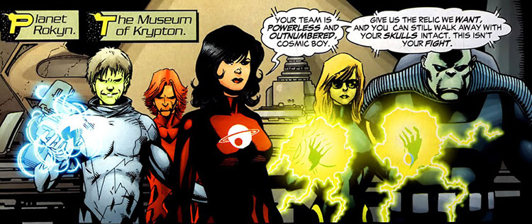 But Brek hadn't come all the way from Tharr for nothing. Instead of giving up and returning home, he banded together with four other Legion rejects — Fire Lad, Night Girl, Stone Boy, and Chlorophyll Kid — and formed the Legion of Substitute Heroes. Their self-described mission was to provide emergency backup to the Legionnaires. (Adventure #306)