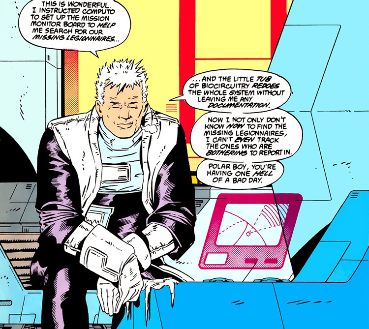 Some Legionnaires such as Brainiac 5 refused to show Polar Boy due respect and it weighed on Brek's self-confidence. Perhaps he was overcompensating when he decided to remain with the Legion during its darkest time.