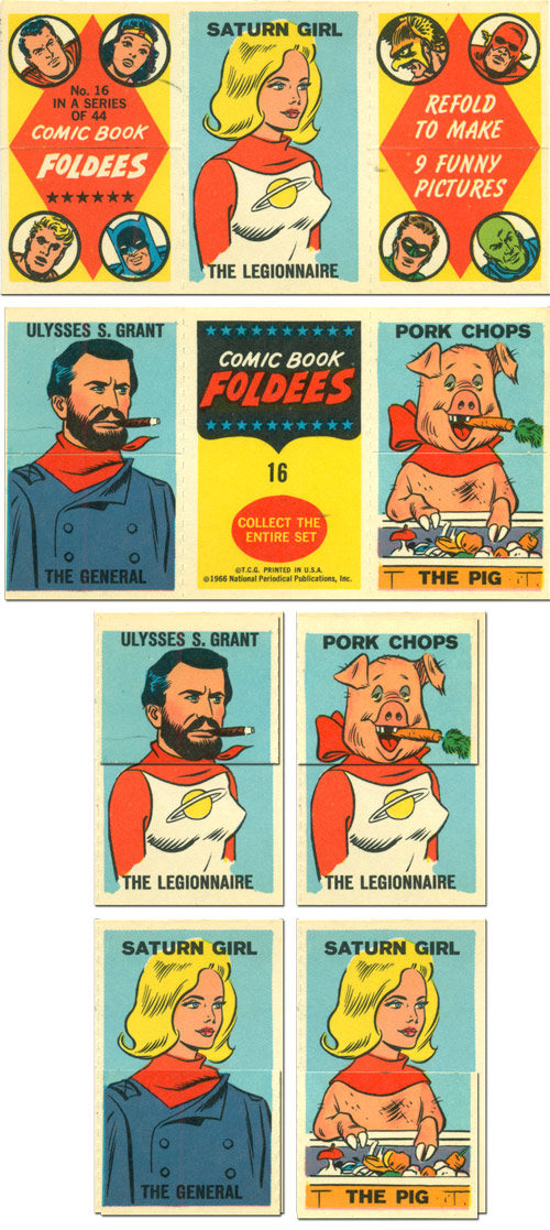 Pork Chops the Legionnaire? Preposterous! This rarity was the only card from the 1966 Topps Foldee set (of 44) that featured a Legionnaire. Read more about Foldees and how they work.