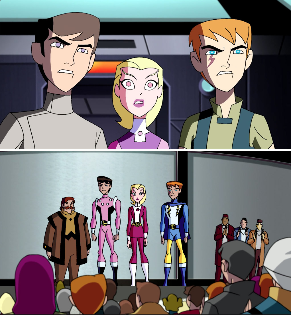 The Legion's first animated appearance, Superman: The Animated Series (season 3, episode 3, 31 Oct. 1998), Cosmic Boy, Saturn Girl, and Chameleon Boy came to meet Superman.