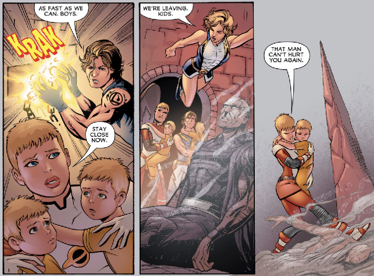 Their family expanded with the birth of daughters Dacey and Dorritt (#20), who exhibited telepathic powers. (#50)