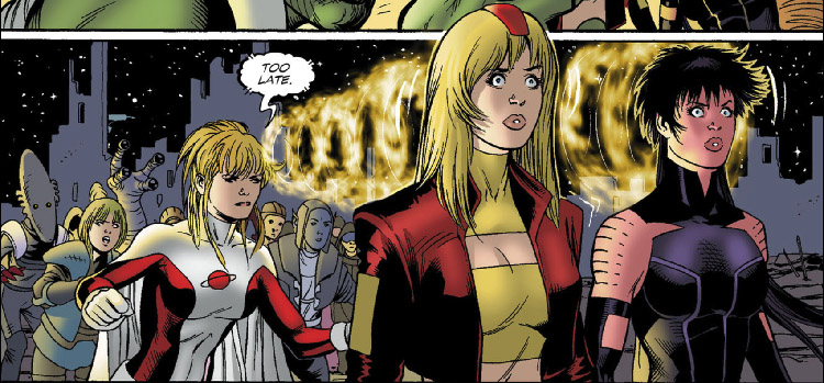 Olivier Coipel on Saturn Girl: "Saturn Girl is too stiff, like Cosmic Boy, and she is too polished, too perfect: not a fun girl at all!" —Comic Book Resources