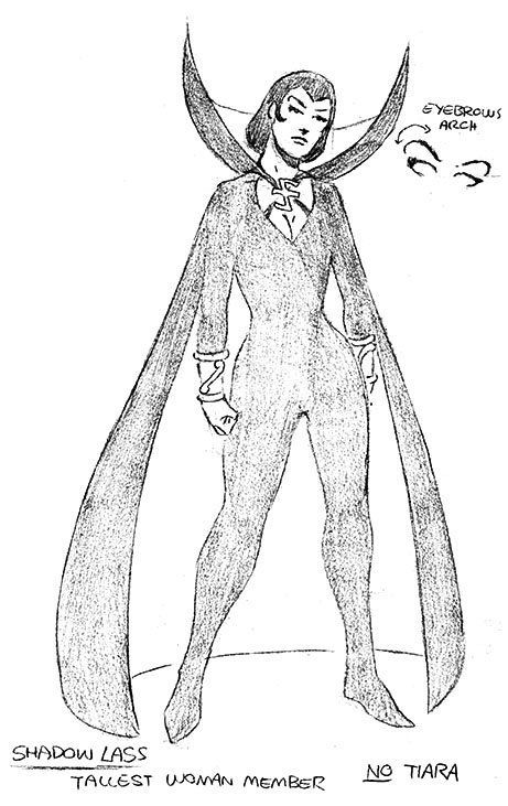 Shadow Lass: "A romantic, a busybody, probably a gossip and a bright, sexy,