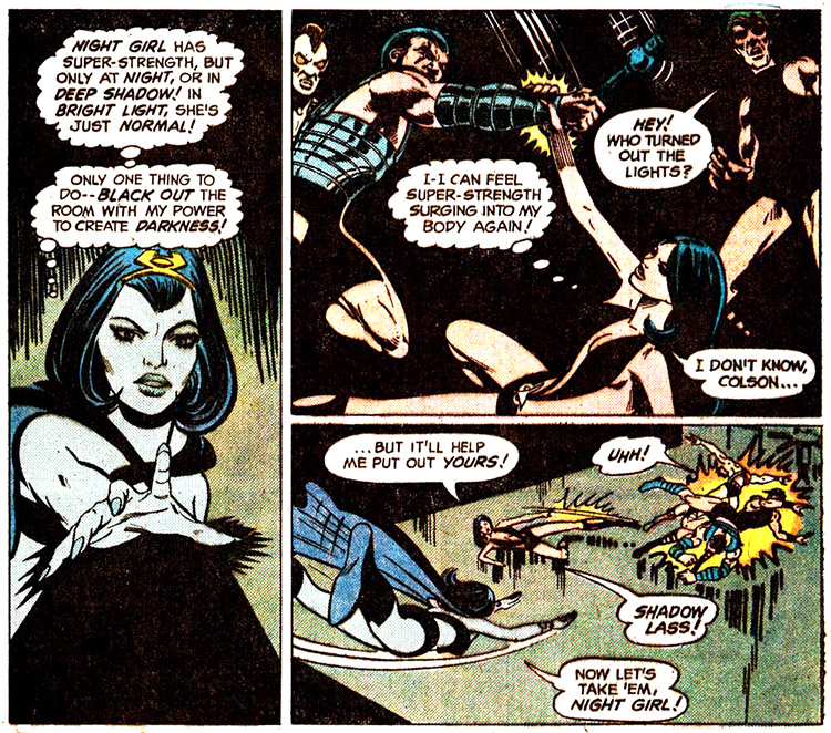 From Superboy #190 (1972); art by Dave Cockrum and Murphy Anderson.The dreamy team: Shadow Lass and Night Girl.