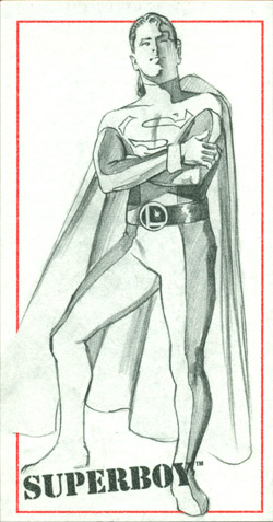 It would be a while before Superboy adopted an alter ego. Superman eventually honored him with the Kryptonian name Kon-El. (Superboy vol. 3 #59)