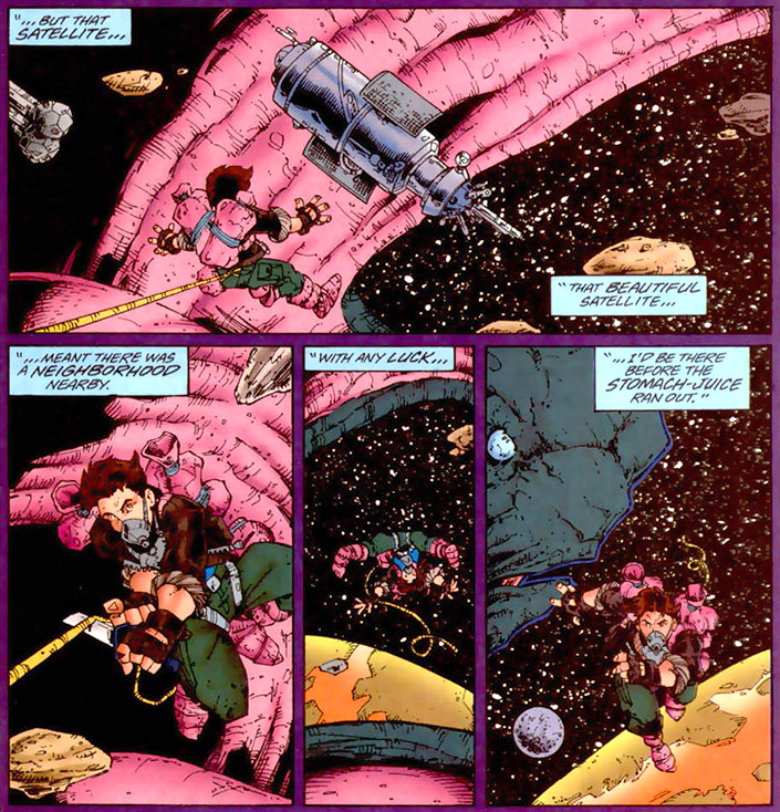 Jo Nah was a teen who stood up to the gangs of Rimbor. When running from a group of gangsters, Jo flew his ship right into the mouth of an giant space whale. He did not die, but was trapped inside of it. He survived by eating the whale's own flesh, and soon discovered that it imbued him with the powers of super-strength, speed, invulnerability, penetra-vision, flash-vision and flight.