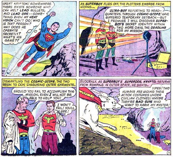 When Ultra Boy was blasted, the hero's ultra-energy manifested as invulnerability in an unusual way; it turned him into a virtual ghost who could float through time. While his body was trapped in limbo, he sent his consciousness into the past, into Superboy's body. But Superboy was drawn into a nuclear bomb explosion and it rendered both of them amnesiac. They instinctively retained the instinct to seek help from the Legion, but they were cautious and crafted the guise of Reflecto. (#282) Note: The character Reflecto has a curious Legion history.