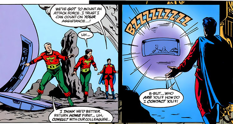 On Earth, the Dominators had secretly taken over Earthgov. One of their greatest secrets was the "Batch SW6," chambers beneath Metropolis that contained clones of the Legionnaires. When massive explosions rocked the globes, these Legionnaires were freed; they included a much younger version of Ultra Boy. (#24)