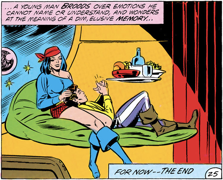 The Legion held a memorial service for Ultra Boy, but Jo had actually survived. Stargrave's blast gave him amnesia, melted his Legion flight ring, and propelled him far through space where he joined the pirate crew of Captain Alisia Frake. The Legion fared poorly in a conflict with Captain Frake, but Saturn Girl sensed the truth that Ultra Boy was still alive among her crew. (#274)