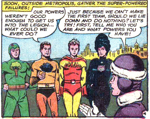 rejected for membership by the Legion of Super-Heroes. Each was given a reason for their rejection — “too
