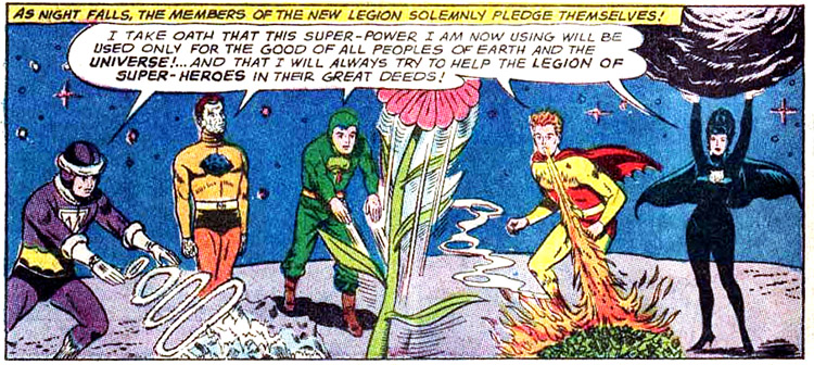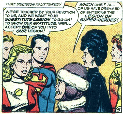 From Adventure Comics #306 (1963); art by John Forte. The Legion is sufficiently impressed by the Substitute Heroes, enough to hold a contest to admit one of them.