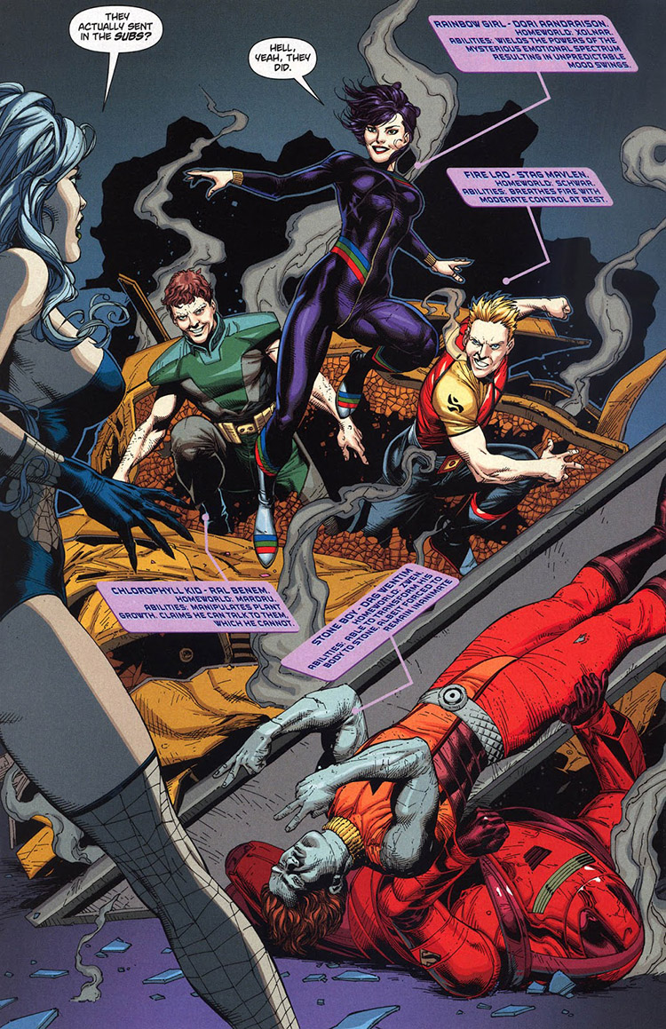 Subs soldiered on, led (seemingly) by Fire Lad, and adding another reject, Rainbow